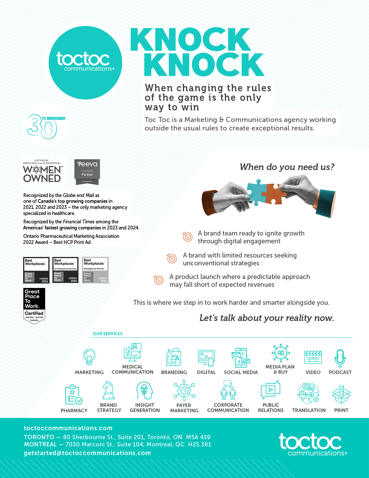 toc toc is a Marketing & Communications Healthcare agency working outside the usual rules to create exceptional outcomes.